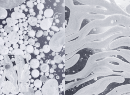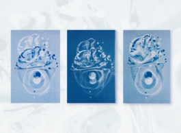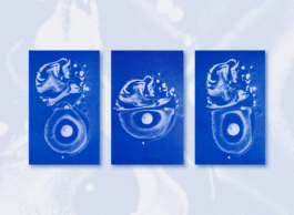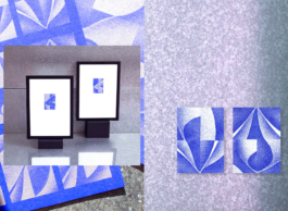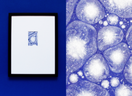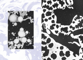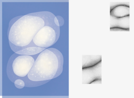 Collages out of oil color & water, airbrush, video, riso printing, porcelain shapes